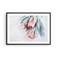 Affiche dans un cadre noir - Poster - Fleurs de protéa roses subtiles sur fond clair - 70x50cm - Honte de leur propre beauté - Décoration murale moderne pour le salon et la chambre ARTTOR