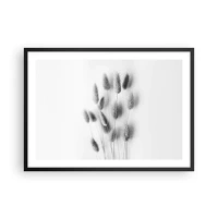 Affiche dans un cadre noir - Poster - Graminées délicates dans des tons de gris sur fond blanc - 70x50cm - Son herbe duveteuse - Décoration murale moderne pour le salon et la chambre ARTTOR