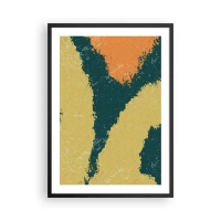 Affiche dans un cadre noir - Poster - Taches de couleurs abstraites dans les tons de vert et d'orange - 50x70cm - Abstraction – mouvement lent - Décoration murale moderne pour le salon et la chambre ARTTOR