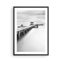 Affiche dans un cadre noir - Poster - Une jetée noire et blanche sur une mer calme - 50x70cm - À l'horizon - Décoration murale moderne pour le salon et la chambre ARTTOR