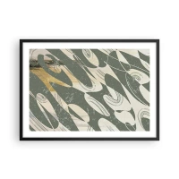 Affiche dans un cadre noir - Poster - Formes dynamiques dans des tons de vert et d'or - 70x50cm - Abstraction rythmique - Décoration murale moderne pour le salon et la chambre ARTTOR