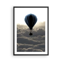 Affiche dans un cadre noir - Poster - Un ballon noir flottant au-dessus des nuages - 50x70cm - Un vagabond au dessus des nuages - Décoration murale moderne pour le salon et la chambre ARTTOR