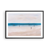 Affiche dans un cadre noir - Poster - Une plage avec des gens sur fond de mer calme - 70x50cm - Un besoin naturel - Décoration murale moderne pour le salon et la chambre ARTTOR