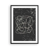Affiche dans un cadre noir - Poster - Lignes chaotiques sur fond noir avec des points blancs - 50x70cm - Errance des pensées - Décoration murale moderne pour le salon et la chambre ARTTOR