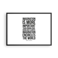 Affiche dans un cadre noir - Poster - Citation inspirante sur fond blanc en police noire - 70x50cm - Einstein sur le pouvoir de l'imagination - Décoration murale moderne pour le salon et la chambre ARTTOR