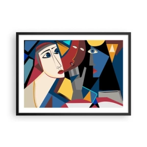 Affiche dans un cadre noir - Poster - Visages cubistes aux couleurs intenses - 70x50cm - Une conversation entre cubistes - Décoration murale moderne pour le salon et la chambre ARTTOR