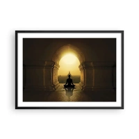 Affiche dans un cadre noir - Poster - Une figure dans une grotte éclairée par des rayons de lumière - 70x50cm - Grotte lumineuse - Décoration murale moderne pour le salon et la chambre ARTTOR