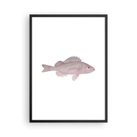 Affiche dans un cadre noir - Poster - Dessin de poisson de style vintage sur fond clair - 50x70cm - Un habitant des eaux exotiques - Décoration murale moderne pour le salon et la chambre ARTTOR