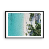 Affiche dans un cadre noir - Poster - Vue plongeante sur une plage tropicale avec de l'eau turquoise et des palmiers - 70x50cm - Vacances au paradis - Décoration murale moderne pour le salon et la chambre ARTTOR