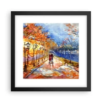 Affiche dans un cadre noir - Poster - Ensemble à travers la nuit et la pluie - 30x30 cm