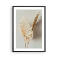 Affiche dans un cadre noir - Poster - Feuilles de palmier séchées dans un arrangement minimaliste sur un fond clair - 50x70cm - Quand tu dois t’apaiser - Décoration murale moderne pour le salon et la chambre ARTTOR