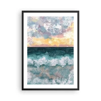 Affiche dans un cadre noir - Poster - Vagues de la mer et coucher de soleil dans un style aquarelle - 50x70cm - Eau, lumière, air - Décoration murale moderne pour le salon et la chambre ARTTOR