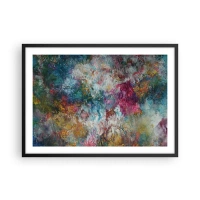 Affiche dans un cadre noir - Poster - Une abstraction colorée ressemblant à des fleurs en fleurs - 70x50cm - En pleine floraison - Décoration murale moderne pour le salon et la chambre ARTTOR