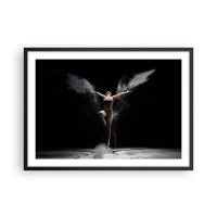 Affiche dans un cadre noir - Poster - Une danseuse en mouvement avec un effet de poussière saisissant sur fond noir - 70x50cm - Les elfes existent - Décoration murale moderne pour le salon et la chambre ARTTOR
