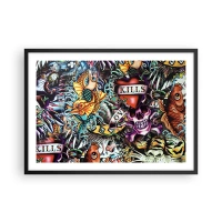 Affiche dans un cadre noir - Poster - Œuvre d'art colorée de style tatouage avec des crânes et des motifs nautiques - 70x50cm - Le rêve du tatoueur - Décoration murale moderne pour le salon et la chambre ARTTOR