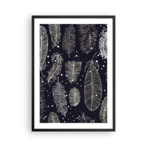 Affiche dans un cadre noir - Poster - Plumes blanches sur fond noir dans un arrangement élégant - 50x70cm - Toile de plumes - Décoration murale moderne pour le salon et la chambre ARTTOR