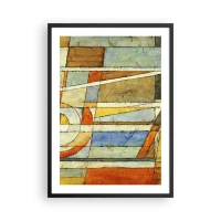 Affiche dans un cadre noir - Poster - Motifs géométriques dans les tons orange et bleu - 50x70cm - Cubisme sur le chantier - Décoration murale moderne pour le salon et la chambre ARTTOR