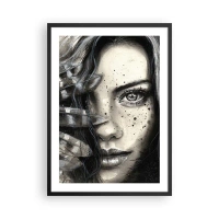 Affiche dans un cadre noir - Poster - Portrait d'une femme dans un style monochrome - 50x70cm - Beauté sauvage - Décoration murale moderne pour le salon et la chambre ARTTOR
