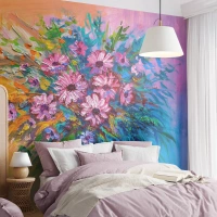 Papier Peint Photo Premium Sand - Une composition florale picturale dans des tons de rose et de violet - 100x70cm - Innocence et passion - Décoration murale moderne pour le salon et la chambre ARTTOR