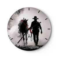 Horloge murale - Pendule murale - Un cow-boy menant son cheval dans le brouillard matinal - 30x30cm - Matinée texane - Décoration murale moderne pour le salon, la cuisine et la chambre ARTTOR