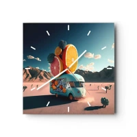 Horloge murale - Pendule murale - Camion de fruits dans un paysage désertique - 30x30cm - Le goût des vacances - Décoration murale moderne pour le salon et la chambre ARTTOR