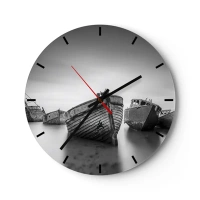 Horloge murale - Pendule murale - De vieux bateaux de pêche échoués sur le rivage en noir et blanc - 30x30cm - Cùest déjà un souvenir... - Décoration murale moderne pour le salon, la cuisine et la chambre ARTTOR