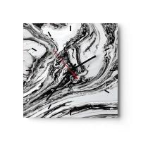 Horloge murale - Pendule murale - Motif de marbre abstrait en noir et blanc - 30x30cm - Au début, c'était le chaos - Décoration murale moderne pour le salon et la chambre ARTTOR
