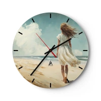 Horloge murale - Pendule murale - Une femme en robe blanche marchant pieds nus sur la plage - 30x30cm - Pour rencontrer le soleil et le vent - Décoration murale moderne pour le salon, la cuisine et la chambre ARTTOR