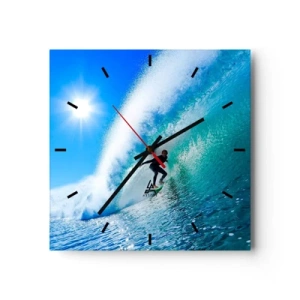 Horloge murale - Pendule murale - Un surfeur sur une planche chevauche une vague puissante sous un ciel bleu. - 30x30cm - A travers le grand ciel bleu - Décoration murale moderne pour le salon et la chambre ARTTOR
