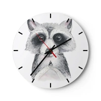 Horloge murale - Pendule murale - Un mignon raton laveur dessiné en noir et blanc - 30x30cm - Un moment pour s'émouvoir - Décoration murale moderne pour le salon, la cuisine et la chambre ARTTOR