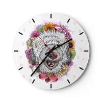 Horloge murale - Pendule murale - Illustration d'un chien entouré de fleurs et de cœurs - 30x30cm - La joie du chiot - Décoration murale moderne pour le salon, la cuisine et la chambre ARTTOR