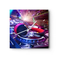 Horloge murale - Pendule murale - Casque DJ sur une console éclairée par des projecteurs lors d'une fête - 30x30cm - Il va s'en passer des choses - Décoration murale moderne pour le salon et la chambre ARTTOR
