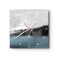 Horloge murale - Pendule murale - Paysage abstrait avec de l'eau et un rivage rocheux - 30x30cm - Eau – terre : choc des éléments - Décoration murale moderne pour le salon et la chambre ARTTOR