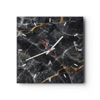 Horloge murale - Pendule murale - Détails noirs et dorés de la surface en marbre - 30x30cm - La vie intérieure de la pierre - Décoration murale moderne pour le salon et la chambre ARTTOR
