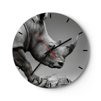 Horloge murale - Pendule murale - Un rhinocéros en noir et blanc sur fond neutre - 30x30cm - Force inarrêtable - Décoration murale moderne pour le salon, la cuisine et la chambre ARTTOR