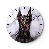 Horloge murale - Pendule murale - Portrait d'un Doberman dans un style géométrique moderne - 30x30cm - Né noble - Décoration murale moderne pour le salon, la cuisine et la chambre ARTTOR