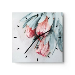 Horloge murale - Pendule murale - Fleurs de protéa roses subtiles sur fond clair - 30x30cm - Honte de leur propre beauté - Décoration murale moderne pour le salon et la chambre ARTTOR