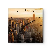 Horloge murale - Pendule murale - Skyline de New York au coucher du soleil avec vue sur l'Empire State Building - 30x30cm - Grandir au soleil - Décoration murale moderne pour le salon et la chambre ARTTOR