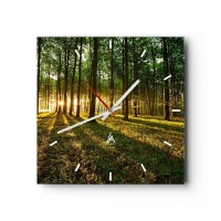 Horloge murale - Pendule murale - Le soleil couchant dans la forêt de feuillus - 30x30cm - Toutes les photographies de printemps - Décoration murale moderne pour le salon et la chambre ARTTOR