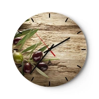 Horloge murale - Pendule murale - Branche d'olivier sur fond de bois - 30x30cm - Directement de la nature - Décoration murale moderne pour le salon, la cuisine et la chambre ARTTOR