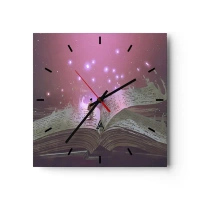 Horloge murale - Pendule murale - Une silhouette marche sur un livre ouvert dans une lumière magique. - 30x30cm - Invitation à un autre monde - lisez ! - Décoration murale moderne pour le salon et la chambre ARTTOR
