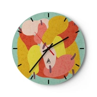 Horloge murale - Pendule murale - Poires colorées dans un style graphique sur fond turquoise - 30x30cm - Essayez le soleil d'été - Décoration murale moderne pour le salon, la cuisine et la chambre ARTTOR