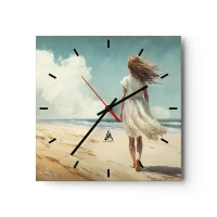 Horloge murale - Pendule murale - Une femme en robe blanche marchant sur la plage par une journée ensoleillée - 30x30cm - Pour rencontrer le soleil et le vent - Décoration murale moderne pour le salon et la chambre ARTTOR