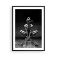 Affiche dans un cadre noir - Poster - Une photographie en noir et blanc d'une ballerine dans une pose artistique. - 50x70cm - Concentration de l'énergie de la danse - Décoration murale moderne pour le salon et la chambre ARTTOR