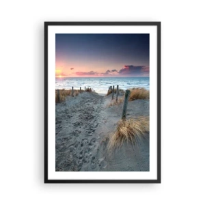 Affiche dans un cadre noir - Poster - Sentier de plage au coucher du soleil avec vue sur la mer - 50x70cm - Tu as versé l'éclat de l'arc-en-ciel sur les flots - Décoration murale moderne pour le salon et la chambre ARTTOR