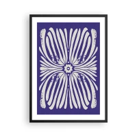 Affiche dans un cadre noir - Poster - Motif floral rétro symétrique sur fond bleu marine - 50x70cm - Inspirations ethniques - Décoration murale moderne pour le salon et la chambre ARTTOR