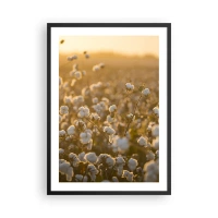 Affiche dans un cadre noir - Poster - Un champ de coton dans la chaude lumière du soleil couchant - 50x70cm - Champ moelleux - Décoration murale moderne pour le salon et la chambre ARTTOR