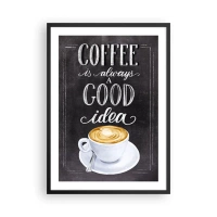 Affiche dans un cadre noir - Poster - Une citation sur le café dans un style typographique minimaliste - 50x70cm - Secret du succès - Décoration murale moderne pour le salon et la chambre ARTTOR