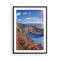 Affiche dans un cadre noir - Poster - Baie de Navagio sur l'île de Zakynthos avec falaises et mer - 50x70cm - Mes super vacances grecques - Décoration murale moderne pour le salon et la chambre ARTTOR