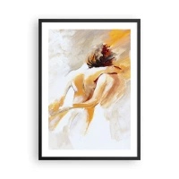 Affiche dans un cadre noir - Poster - Couple abstrait aux couleurs chaudes sur fond clair - 50x70cm - Proximité dans le ciel - Décoration murale moderne pour le salon et la chambre ARTTOR